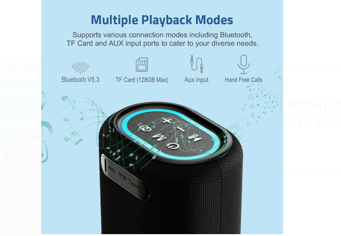 – Multiple Inputs: Supports AUX and TF/SD card (Max 128