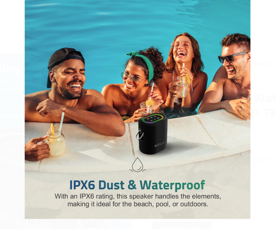 Prepare for your next adventure—be it a poolside party, beach day, or shower karaoke. Featuring IPX6 dust and water resistance, these Bluetooth speakers handle splashes, spills, and light rain effortlessly. Their rugged design makes them the perfect companion for any setting, ensuring your music goes wherever you do without worry.