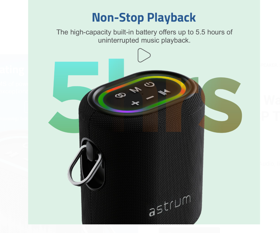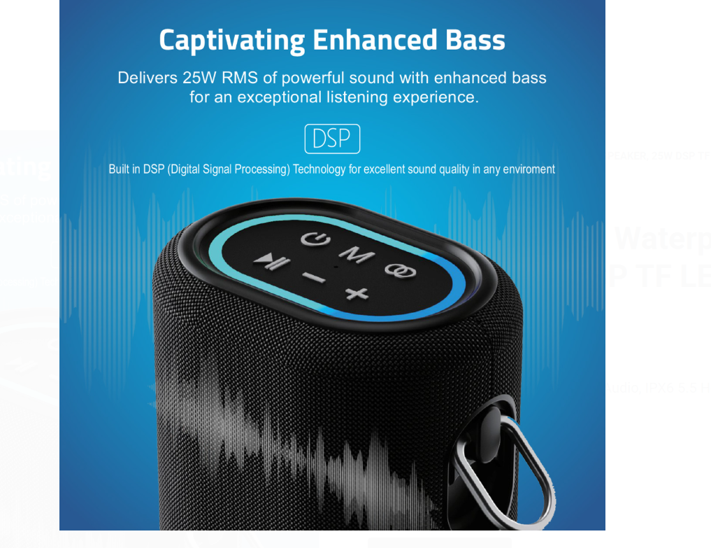 Experience unparalleled sound quality with the Thumping Clear Bass of our Bluetooth speaker. Designed with built-in 25W RMS speakers. Equipped with built-in DSP (Digital Signal Processing) technology, this speaker delivers exceptional sound quality in any environment. DSP optimizes audio output by dynamically adjusting the sound to suit various conditions, ensuring clear, balanced, and immersive sound whether you’re indoors, outdoors, or in a noisy setting.