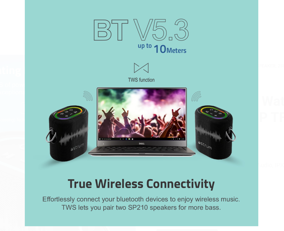 – TWS (True Wireless Stereo) : Pair two SP210 speakers for