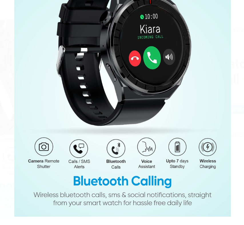 – Supports wireless bluetooth calling directly from the smartwatch